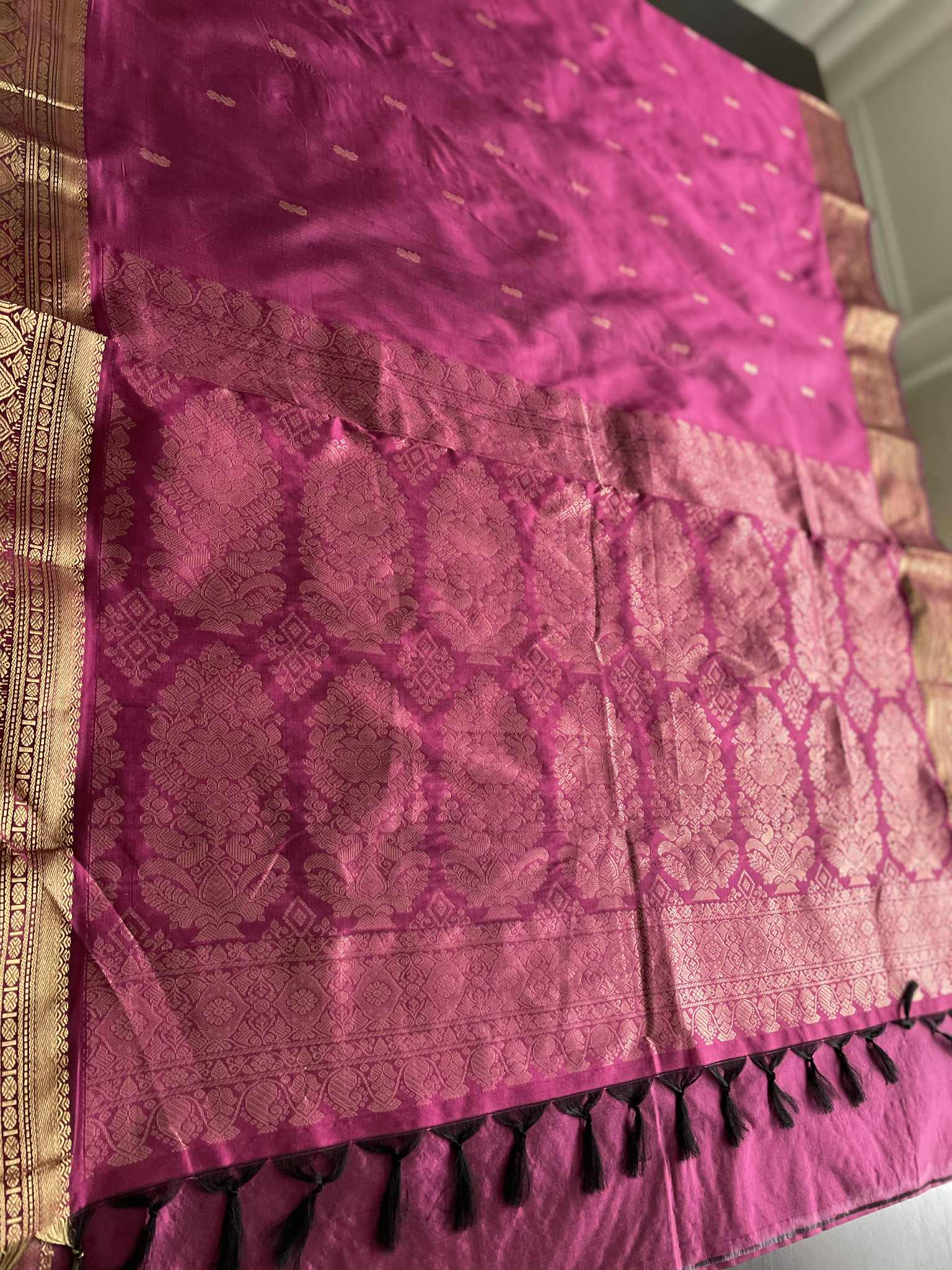 Handloom Kanchipuram Silk Saree with Jhalar Pallu, Gold Zari Weaving throughout Saree and Gold Zari Border.