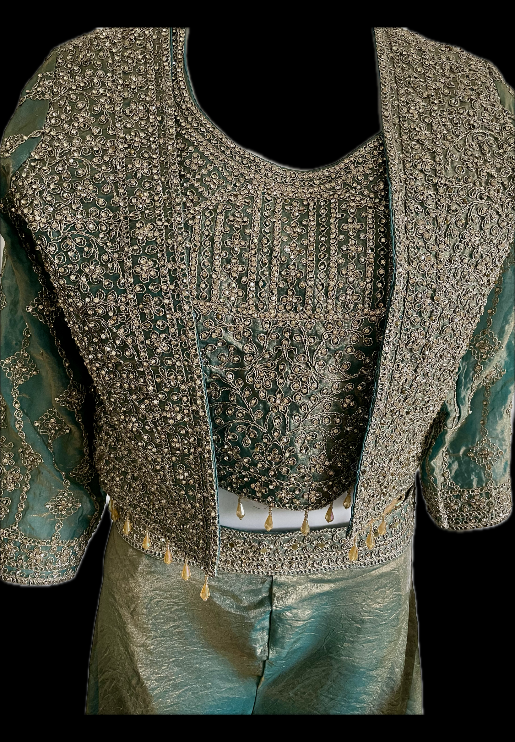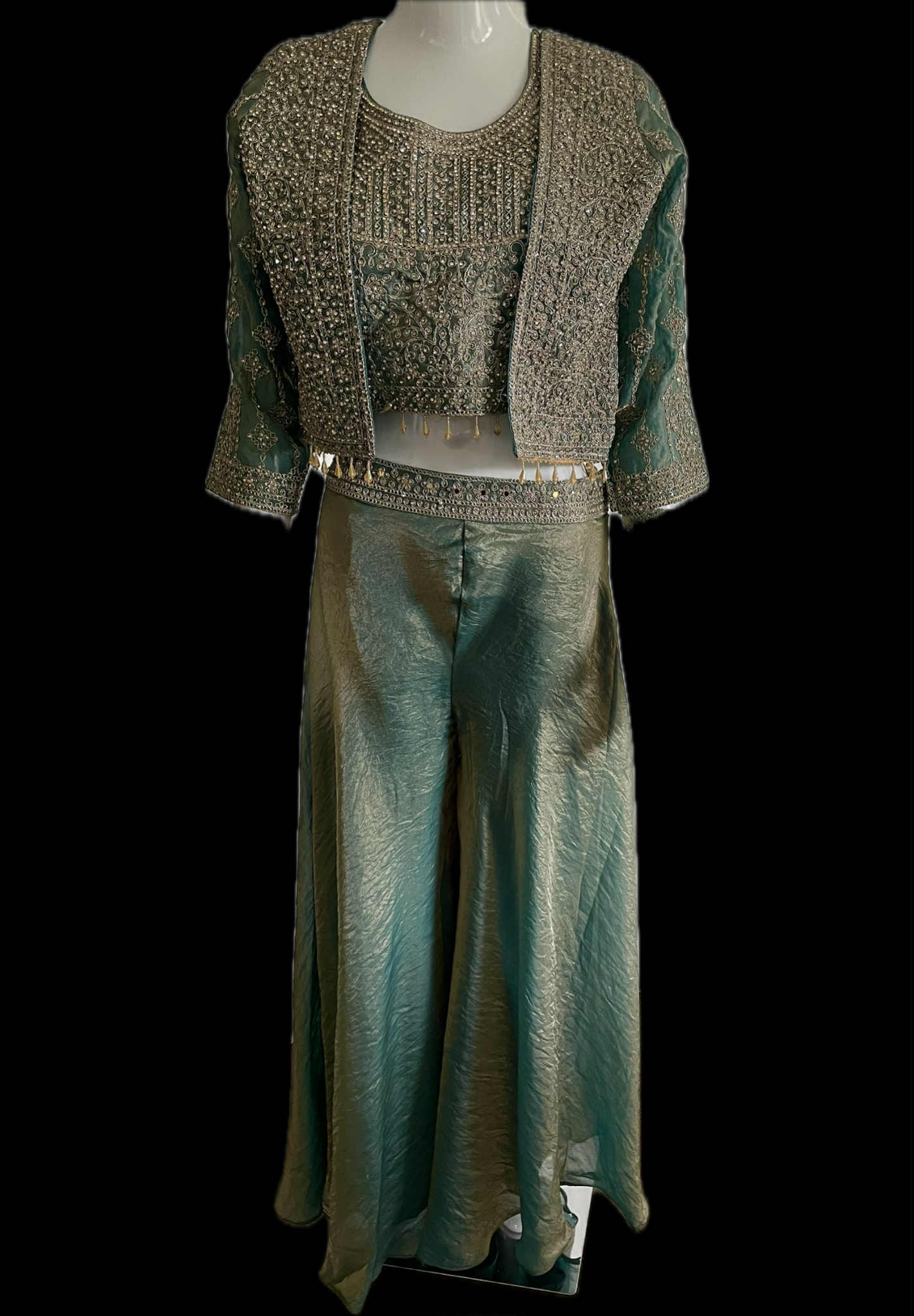 Palazzo Set with Jacket. Size 38. (M) Blouse Stitched. Palazzo Length 105 cm. Coat length 45 cm. Completely Stitched Set.