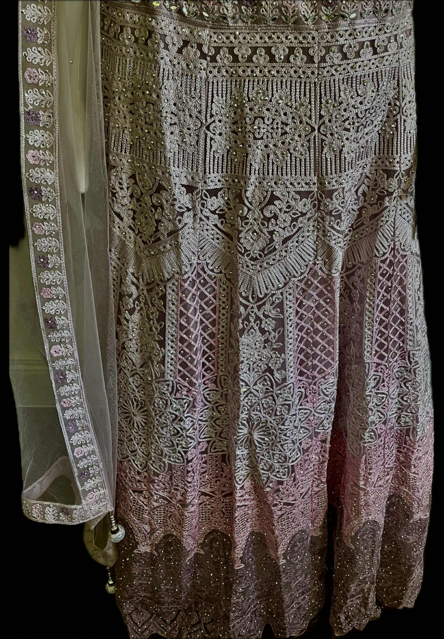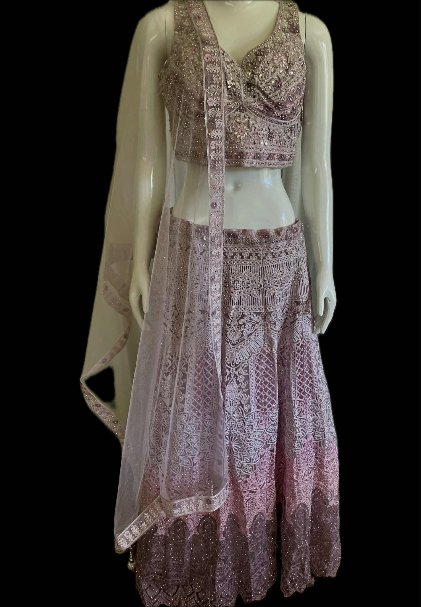 Heavy Net Lehenga with Embroidery and Stone and Mirror Work. Size 40. L Stitched Blouse. Lehenga Length 115 cm Dupatta 220 cm x 65 cm Completely Stitched Lehenga and Choli. Lehenga with Can Can.